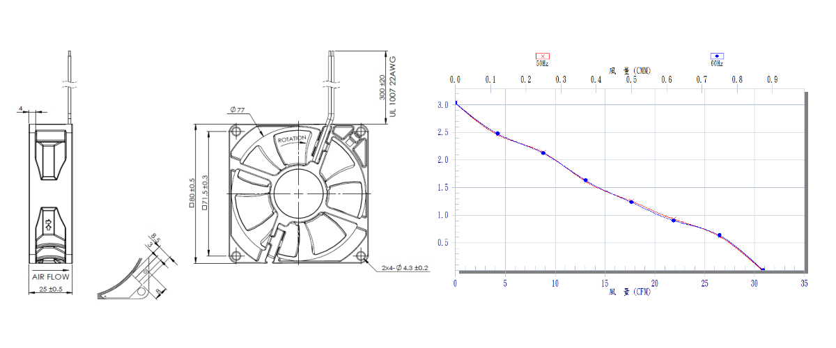 Lebenserwartung: Kugellager: Über 50.000 h. (bei 40 ℃)